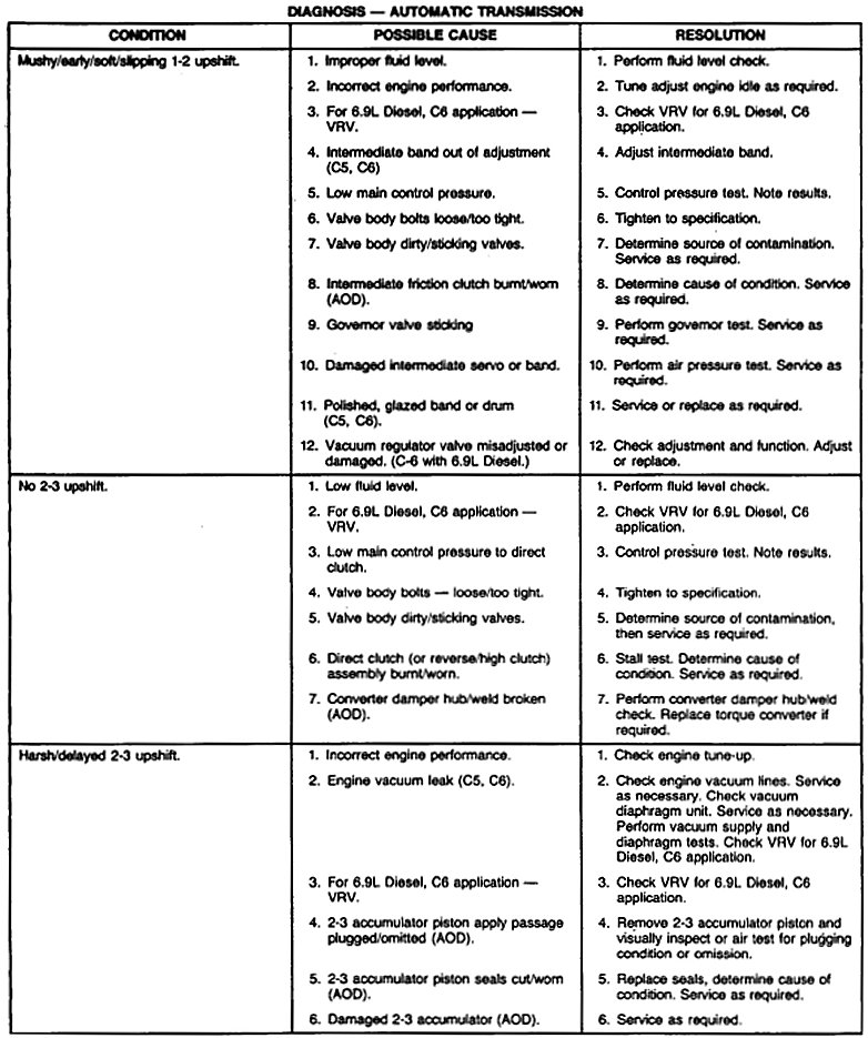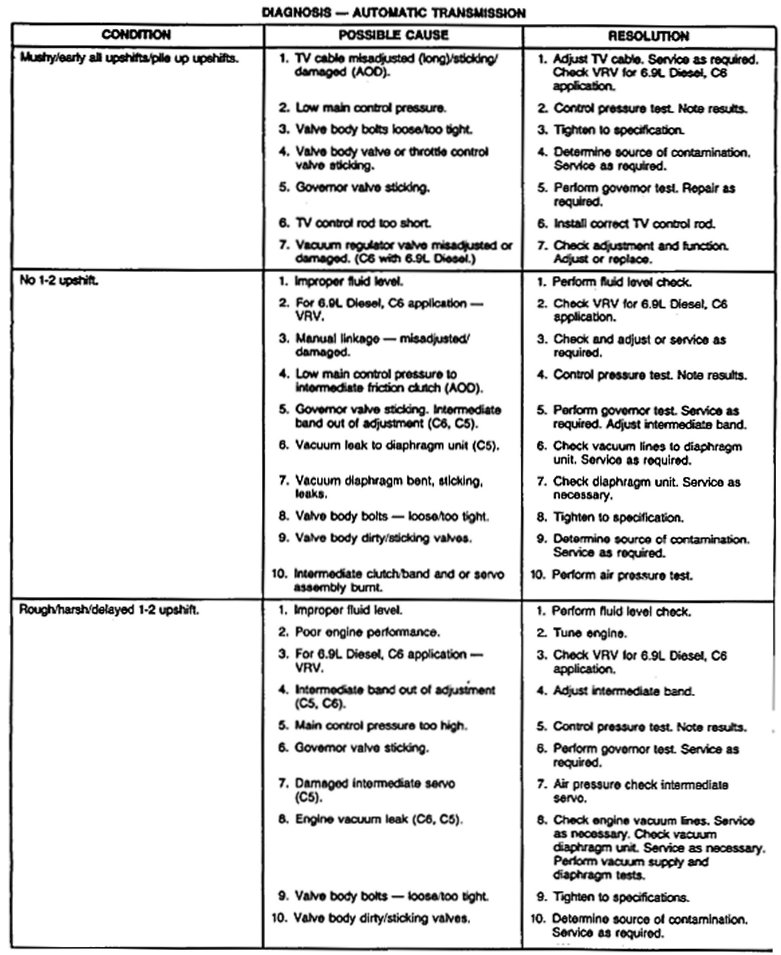 The diagnosis guides in this Section can be used as an aid when diagnosing automatic transmissions.