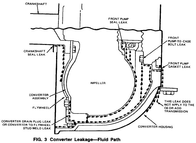 If welds on the torque converter indicate leakage, remove the converter and make the following check