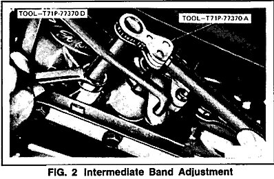 3. Tighten the adjusting screw using Band Adjusting Ratchet T71 P-77370-A and Socket T71 P47370-D or equivalent (Fig. 3). Tool T71 P-77370-A or equivalent, is a pre-set torque wrench which will FIG. 2 Intermediate Band Adjustment click when the torque on the adjusting screw reaches 13.5 N.m (10 lb-ft).