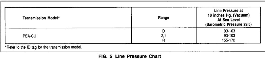 8. Compare the pressure readings from Step 7 to the specified pressure in the line pressure chart (Fig. 5), and proceed as follows: