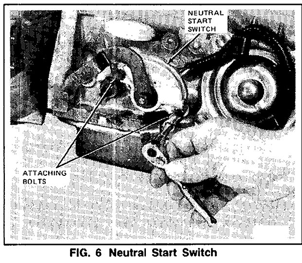 2. With the manual linkage properly adjusted, loosen the two switch attaching bolts (Fig. 6).