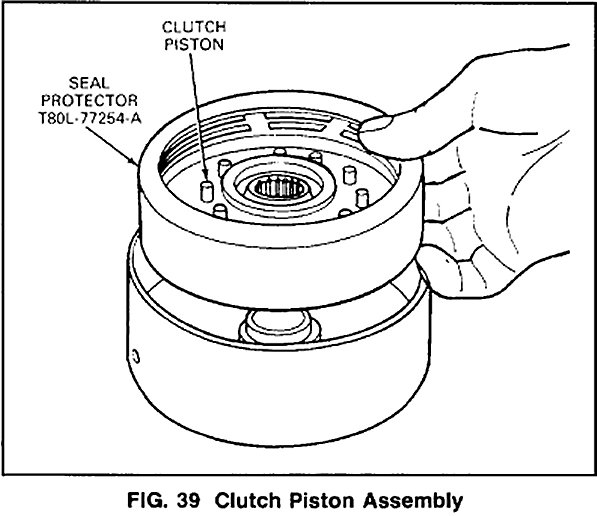 b. Install the piston in Seal Protector T8OL-77254-A (or equivalent) as shown in Fig. 39.