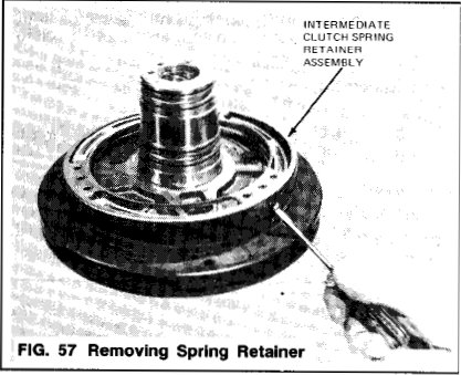 4. Remove the spring retainer assembly by carefully dislodging the tabs (Fig. 57)