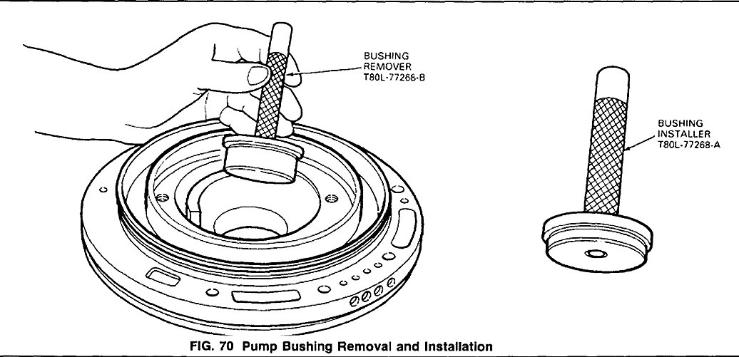 Remove the bushing using Bushing Remover T8OL-77268-B (Fig. 70).