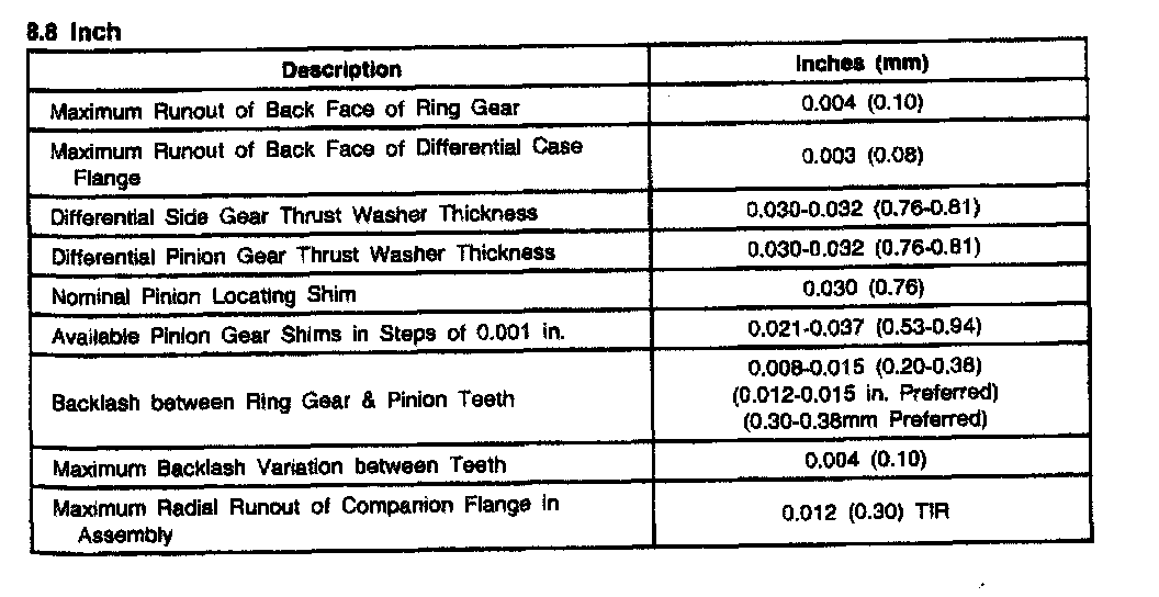 Ford 8.8 Inch, Carrier Backlash/Shim Thickness: