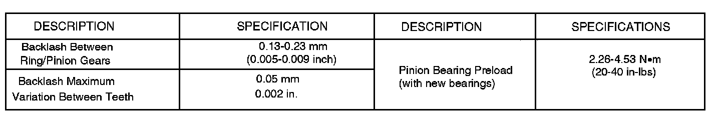 Axle Backlash Specifications