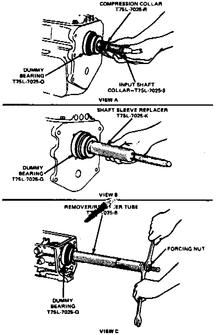 11. Install dummy bearing No. T75L-7025-Q or equivalent on transmission input shaft.