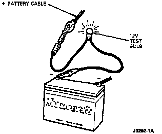 2. To check for minimum battery charge and/or condition of bulb, connect test lamp across battery terminals. Lamp should light.