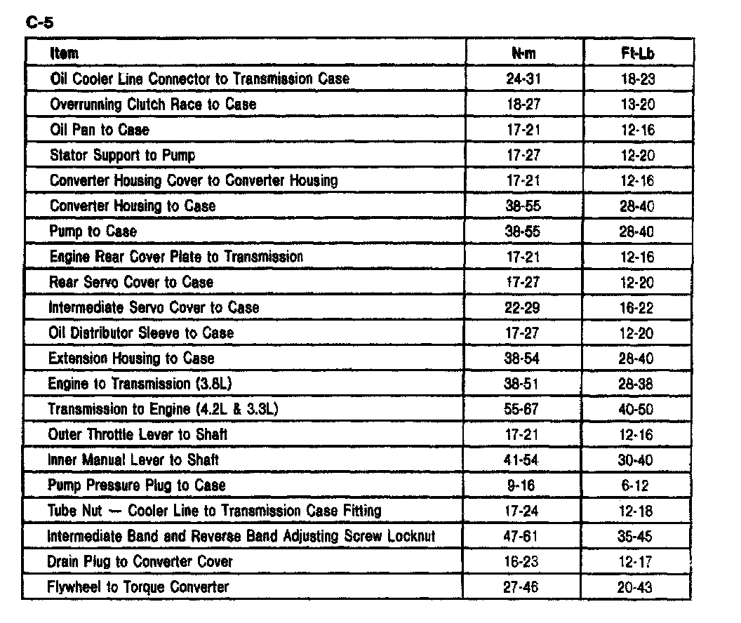 C5 3-spd A/T, Transmission Torque: