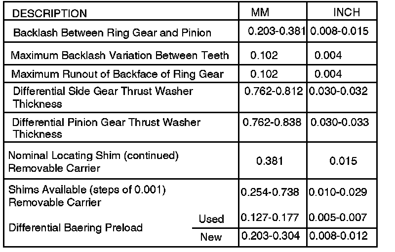 Axle Backlash Specifications