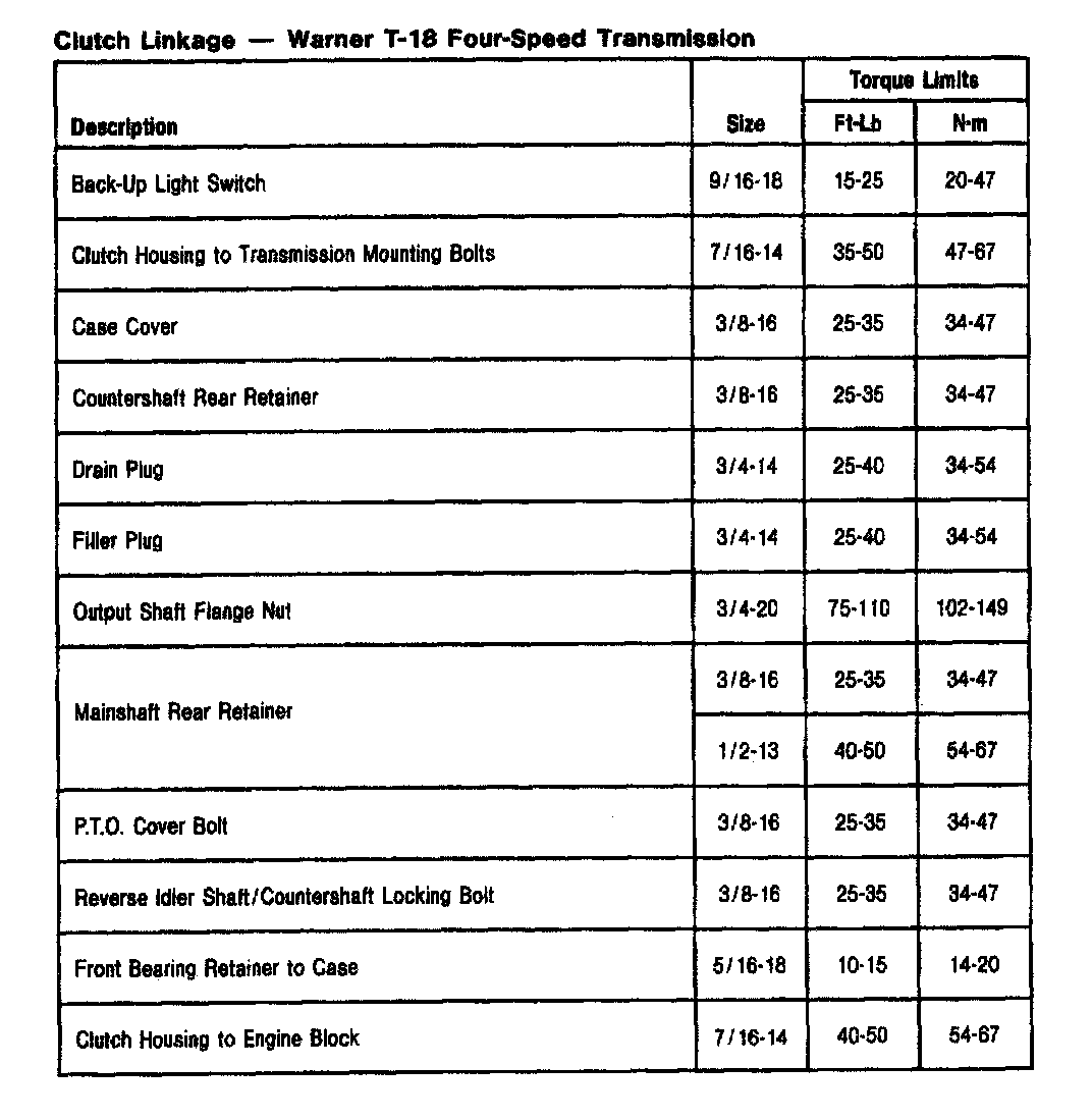 Borg-Warner T18 4-spd M/T, Clutch Torque (F150-350, Bronco):
