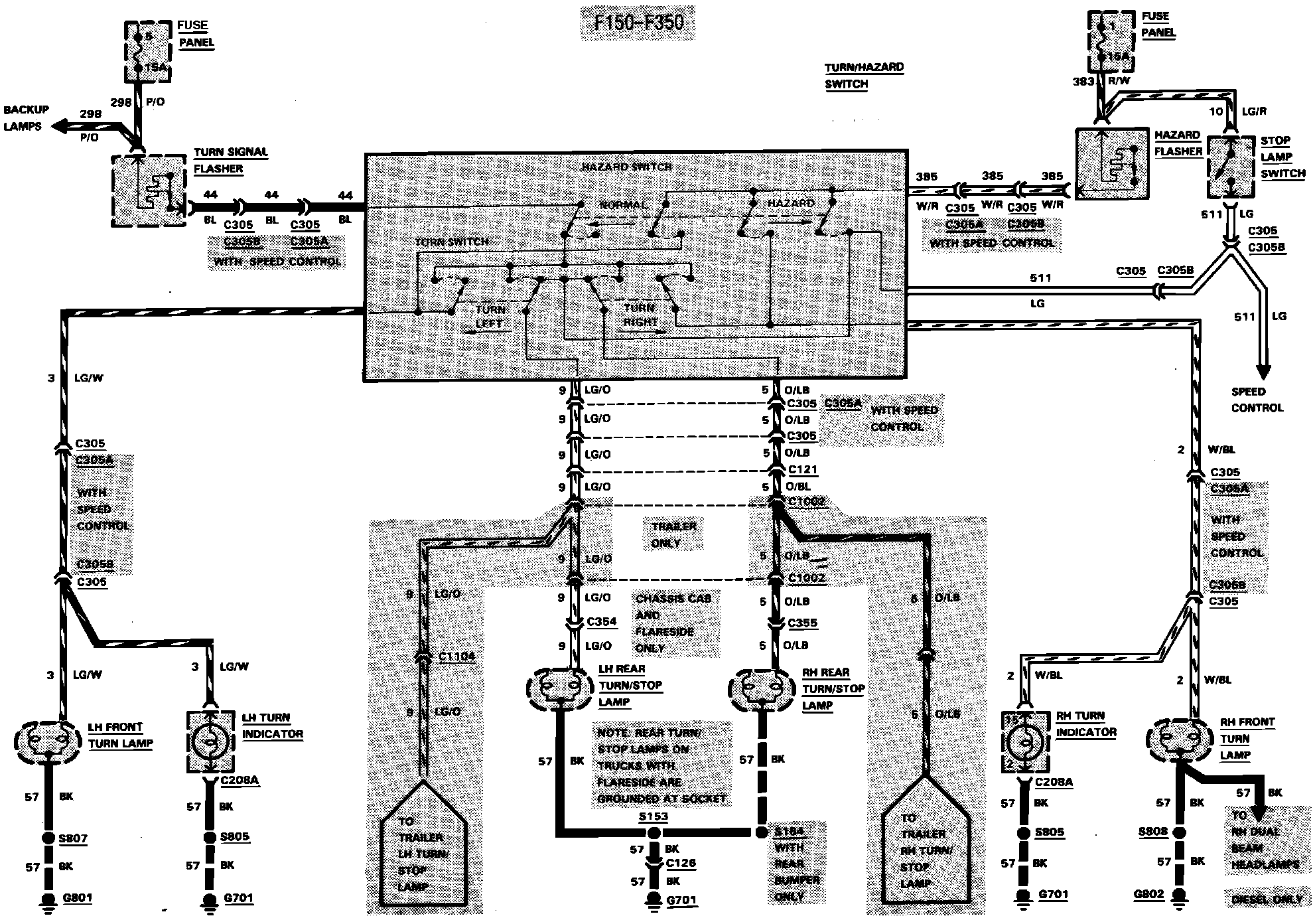 Fig. 24 Exterior Lamp (Turn, Stop & Hazard) Wiring Circuit. F150-350: