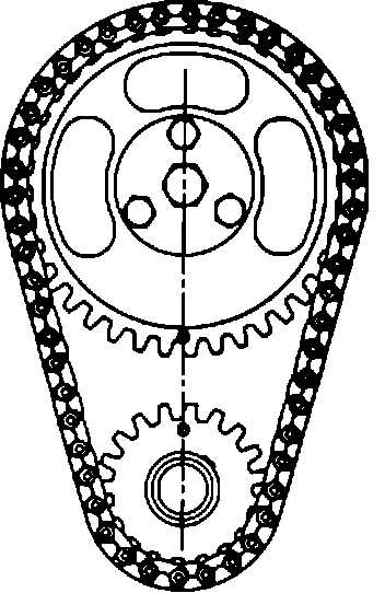 After removing the cover as outlined previously, remove the crankshaft front oil slinger, if equipped. On V6-232 engines, remove camshaft thrust button and spring from end of camshaft. Crank the engine until the timing marks are aligned as shown in Figs. 31 and 32. Remove camshaft sprocket retaining bolt, washer and fuel pump eccentric. Slide sprockets and chain forward and remove them as an assembly. Reverse the order of the foregoing procedure to install the chain and sprockets, being sure the timing marks are properly aligned.