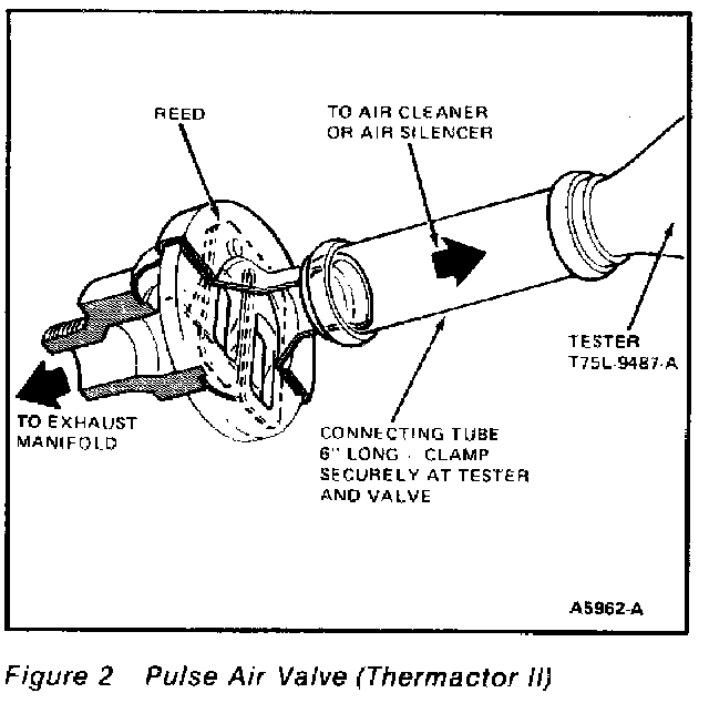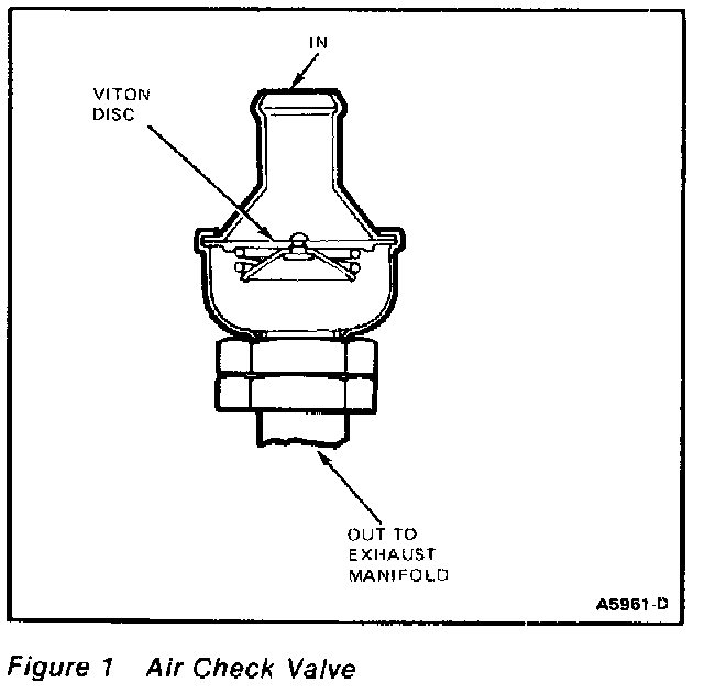 If the above tester is not available, blow through the check valve, toward manifold, then attempt to suck back through the valve; the valve should free flow in the direction of the exhaust manifold only.