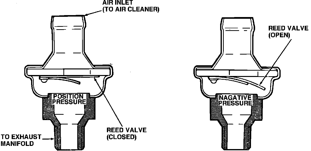 When pressure inside the exhaust manifold is more than the pressure in the air cleaner, the reed in the pulse air valve is closed. When pressure in the exhaust manifold is lower than in the air cleaner, the reed opens and allows air to be drawn into the exhaust manifold.