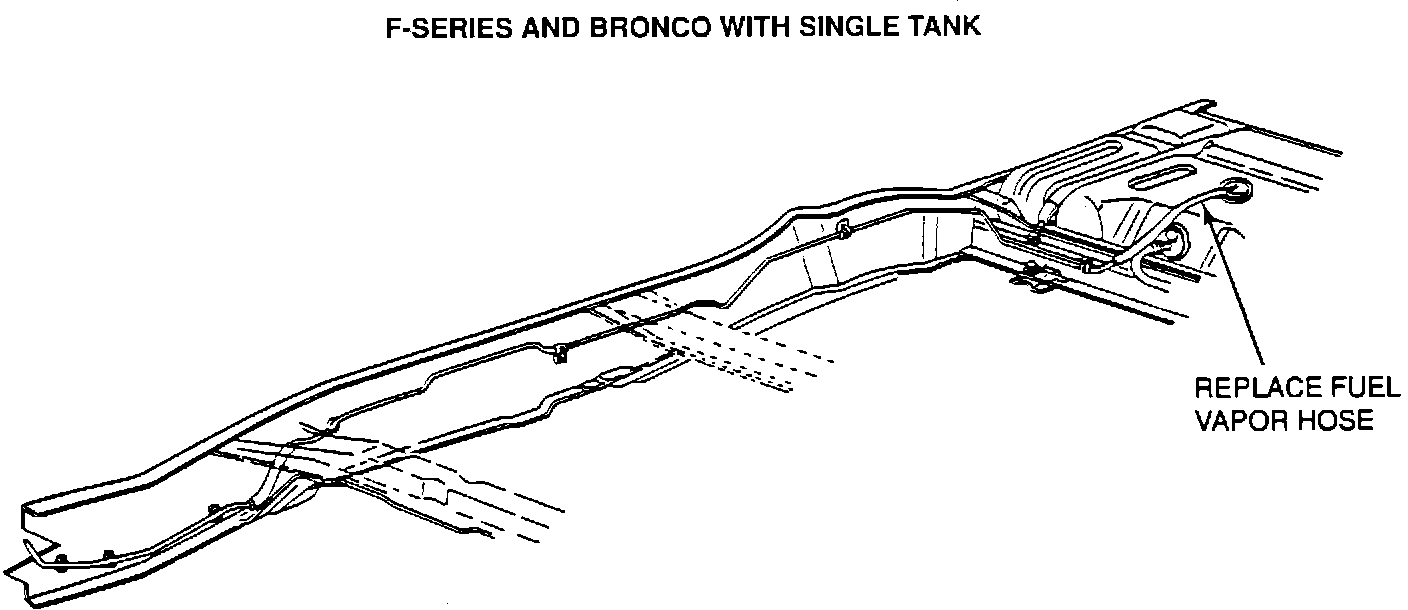 Affected Vehicles: 1986 and 1987 model California F150/250 and Bronco trucks equipped with 5.0L engines having Calibration Codes 6-54Q and 6-54S-R00 (1986 models) and 7-54R-R05/R11 and 7-54S-R05/R11 (1987 models). Refer to the following information depending upon the number and location of the fuel tanks.
