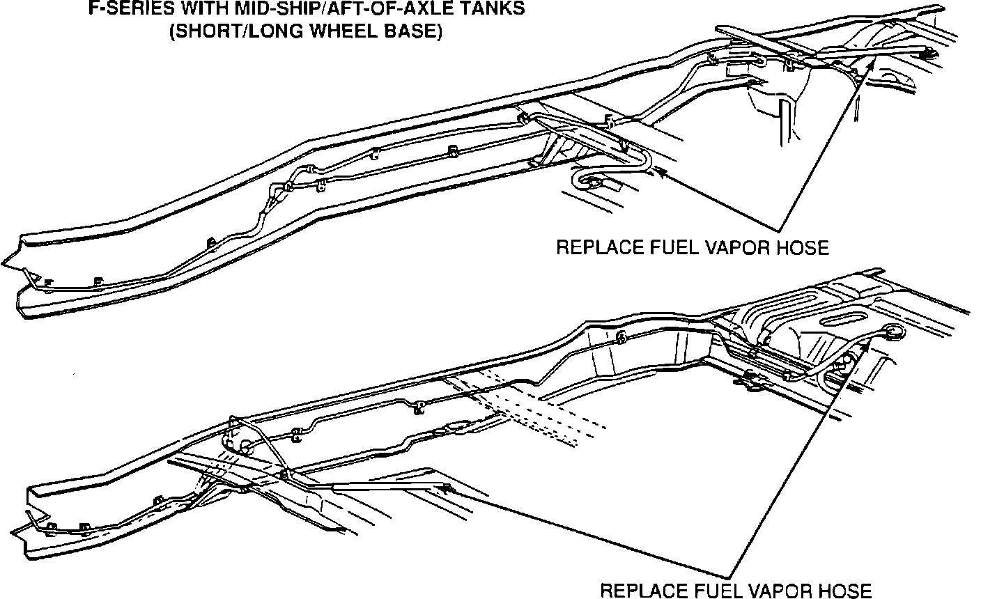 5. Disconnect the vapor return line from the clips holding it to the rear crossmember and to the right frame rail.