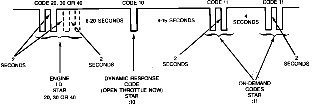 c. After a four to fifteen second pause (to momentarily place the throttle in a wide open position) the voltmeter needle will fluctuate from zero to three volts for the fast codes.