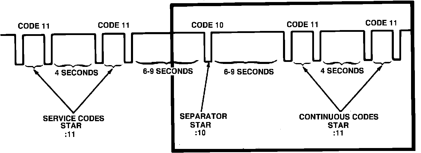 The continuous monitor test service codes are separate from the Quick Test Key ON/Engine OFF codes by a single separator pulse, Fig. 32. The continuous monitor codes should never be used for diagnosis until the Key ON/Engine OFF and Engine Running tests result in a pass code 11.