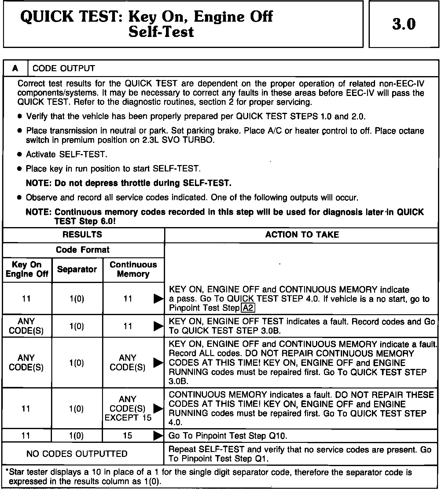 Quick Test 3.0A - KOEO Self-Test & Code Output: