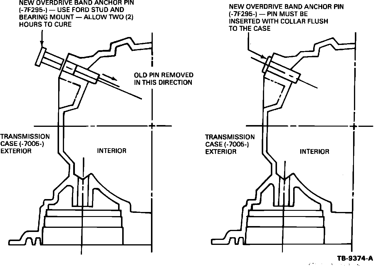 ACTION: If service is required, use the appropriate Car or Light Truck Shop Manual, Section 17-20, for installation of the new overdrive band anchor pin, Figure 10.
