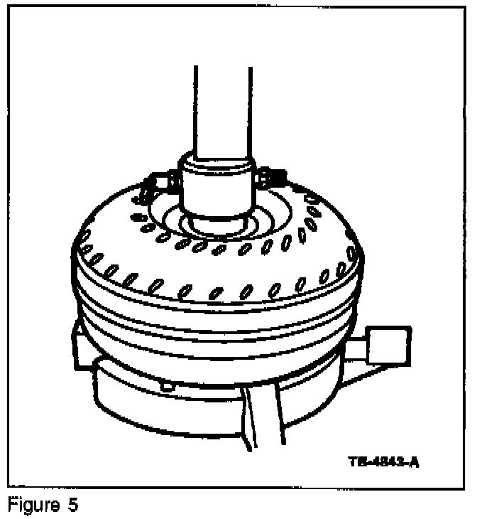 7. Turn the torque converter and tool upside down and reinstall into the press. Repeat Steps 2-6 to check for leaks on the opposite side. Refer to Figure 5.