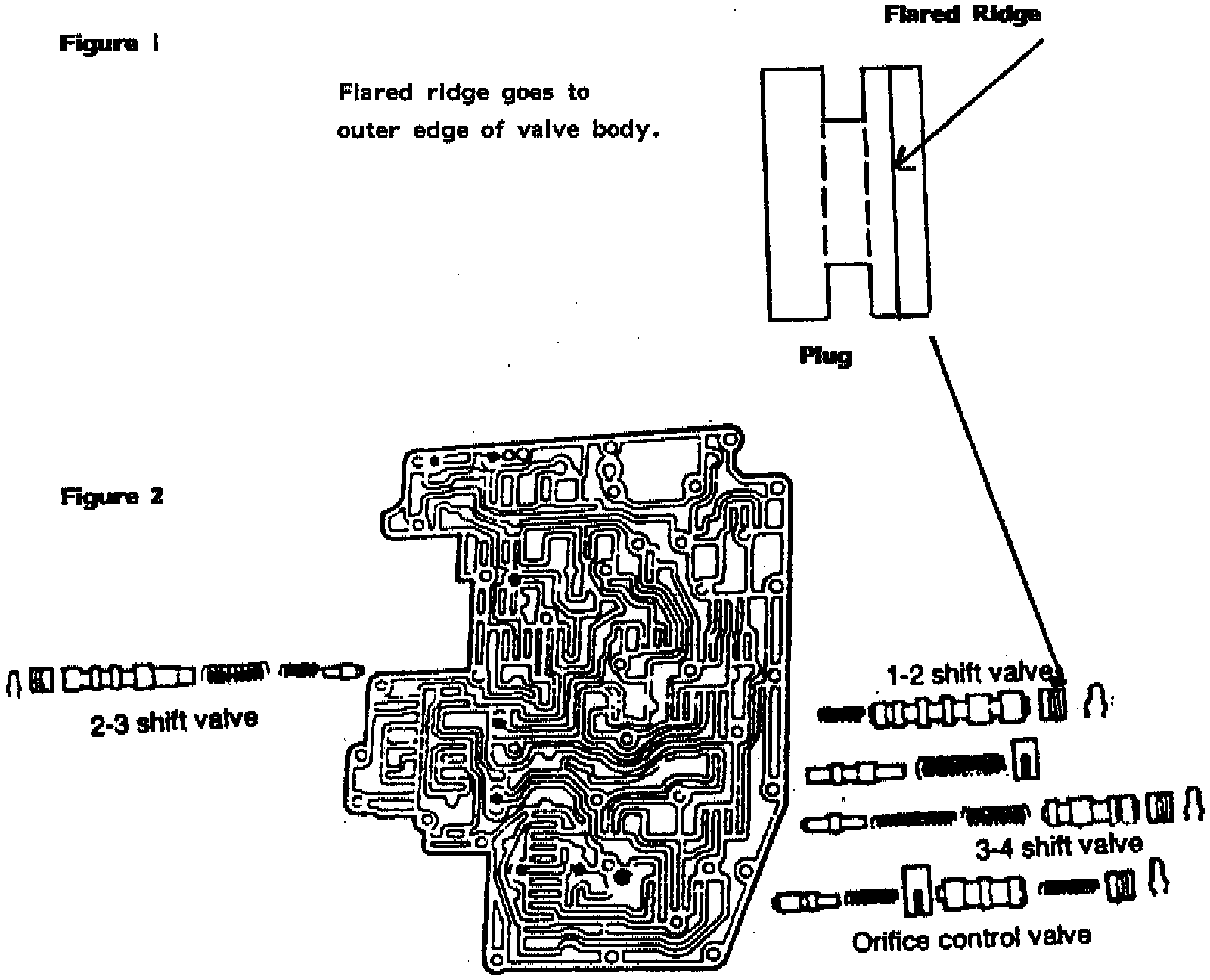 The plugs that should be sealed are for the 1-2, 2-3 and 3-4 shift valve and orifice control valve (Figure 2).