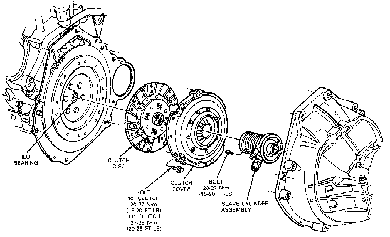 2. When re-installing the original pressure plate and cover assembly, align the assembly and flywheel according to the marks made during the removal operations. Position the pressure plate and cover assembly on the flywheel, align the pressure plate and disc, and install the retaining bolts that fasten the assembly to the flywheel. Tighten the bolts to specification and remove the clutch disc pilot tool.