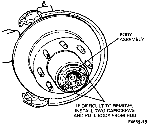 4. Remove the body assembly from the hub. If the body is difficult to remove, install two capscrews and pull the body assembly out of the hub.