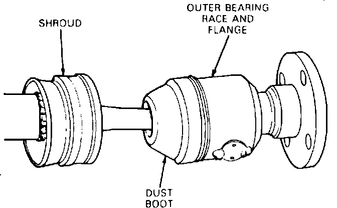 2. Remove shroud taking care not to damage dust boot or outer bearing race and flange assembly,Fig. 11. It may be necessary to tap shroud using a plastic hammer.