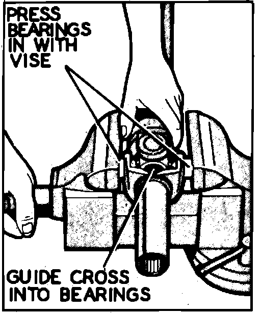 5. Install bearings in yoke in same manner. When installation is completed, check U-joint for binding or roughness. If free movement is impeded, correct the condition before installation in vehicle.