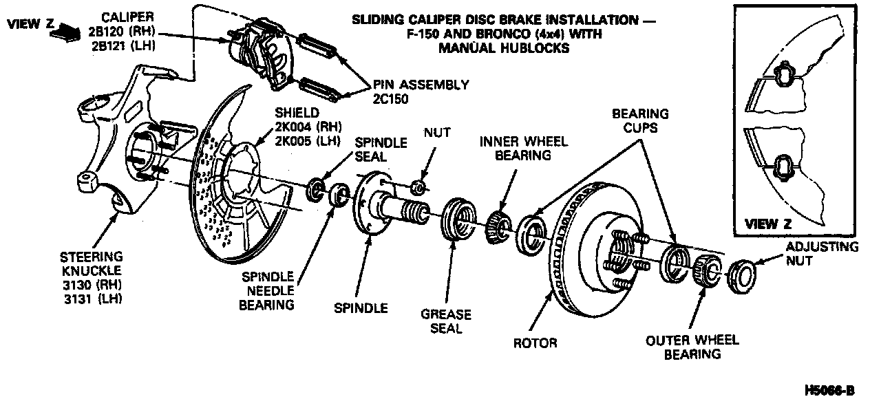 1. To avoid overflow when the caliper piston is compressed into the caliper piston bore, remove a portion of brake fluid from master cylinder disc brake reservoir. Properly dispose the removed fluid.