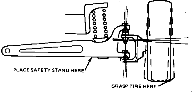 3. Check upper ball joint by grasping upper edge of tire and moving wheel in and out. If movement exceeds {1/32} inch, the upper ball joint must be replaced.