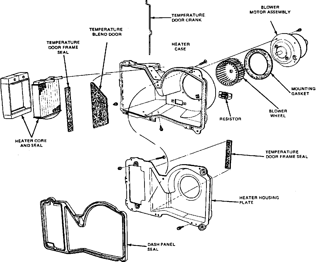 6. On 1980---81 models, remove screw attaching top center of heater assembly to dash.