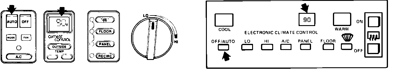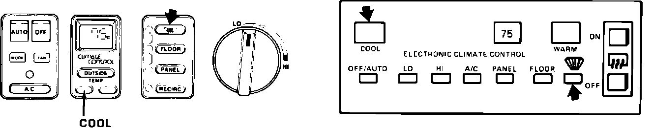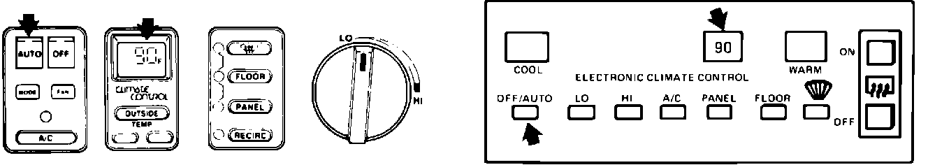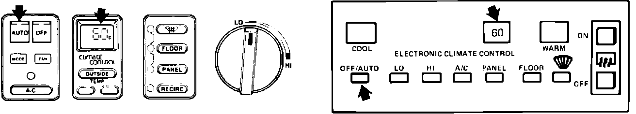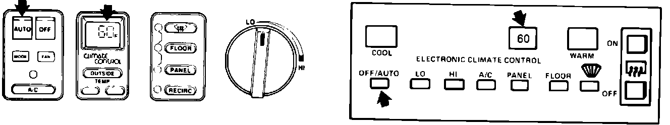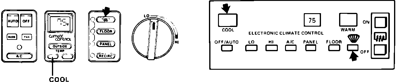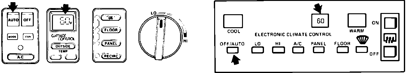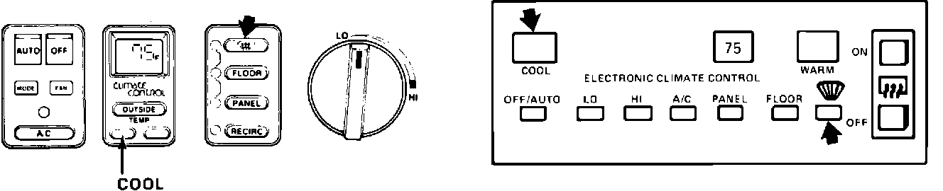 6. Start engine. Set A/C system control to AUTO position and adjust temperature setting to 60~F. The airflow should be from panel register openings.