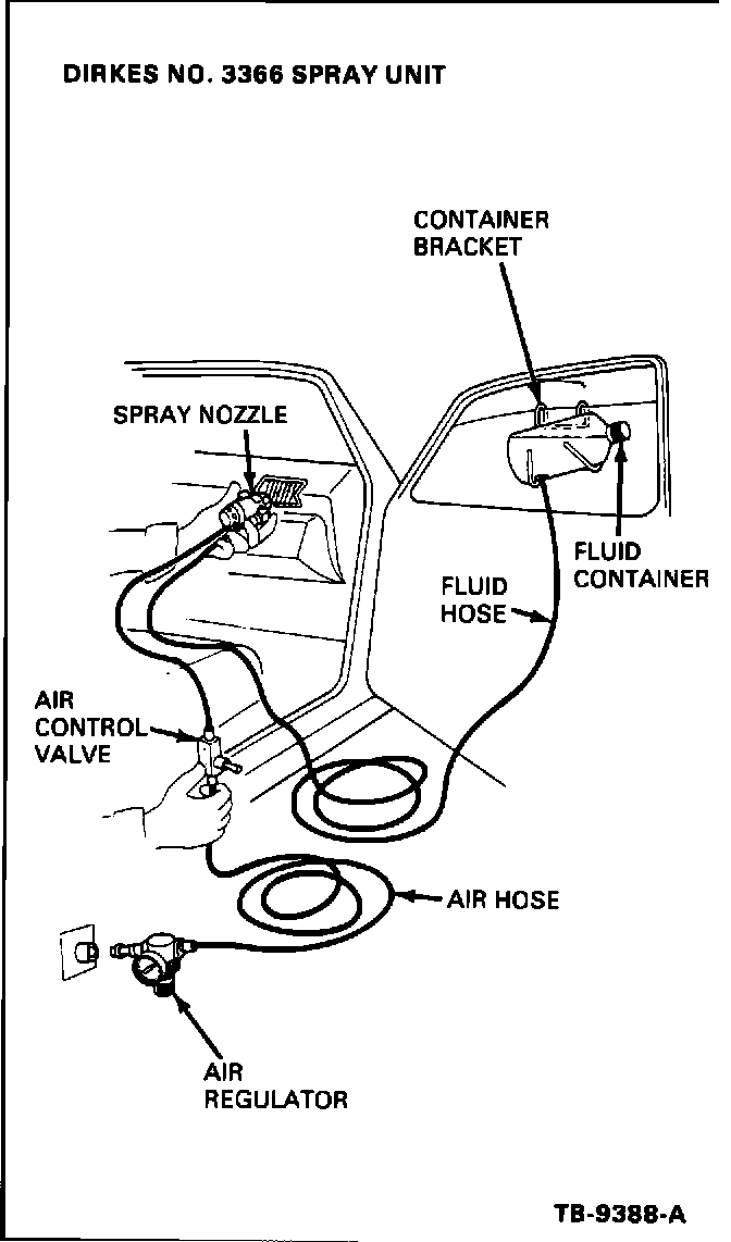 The Dirkes spray unit, Figure 1, must be used to make sure the chemicals enter the blower assembly and saturate the evaporator core. This is the area where the chemicals are needed most.