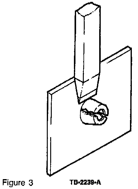 ^ Cut the rivet's head off with a hammer and flat chisel (Figure 3).