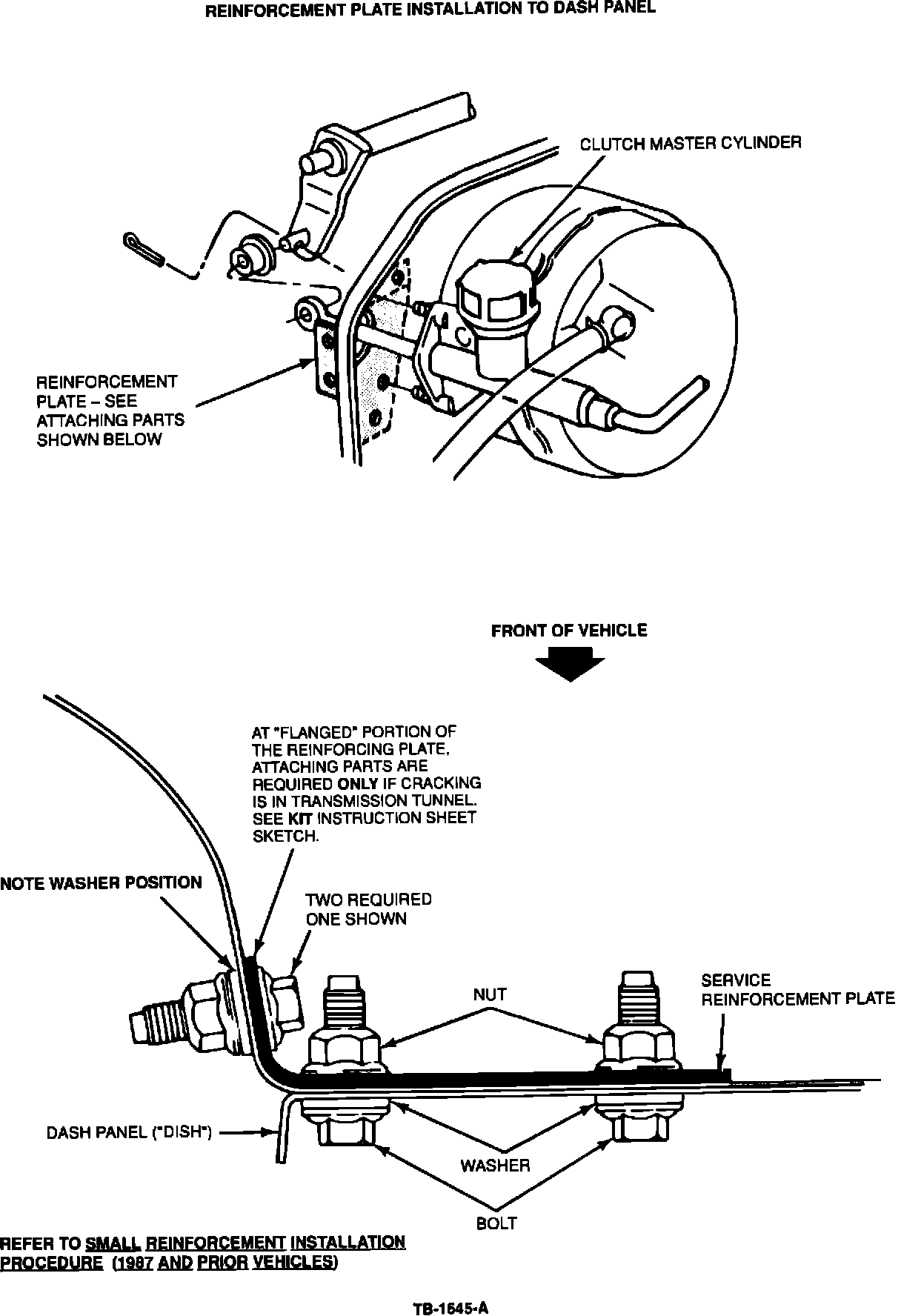 There are two small reinforcement kits. One for 1988 and later models and one for 1987 and prior models. This is necessary because a new hydraulic clutch master cylinder mounting pattern was introduced for 1988 models.