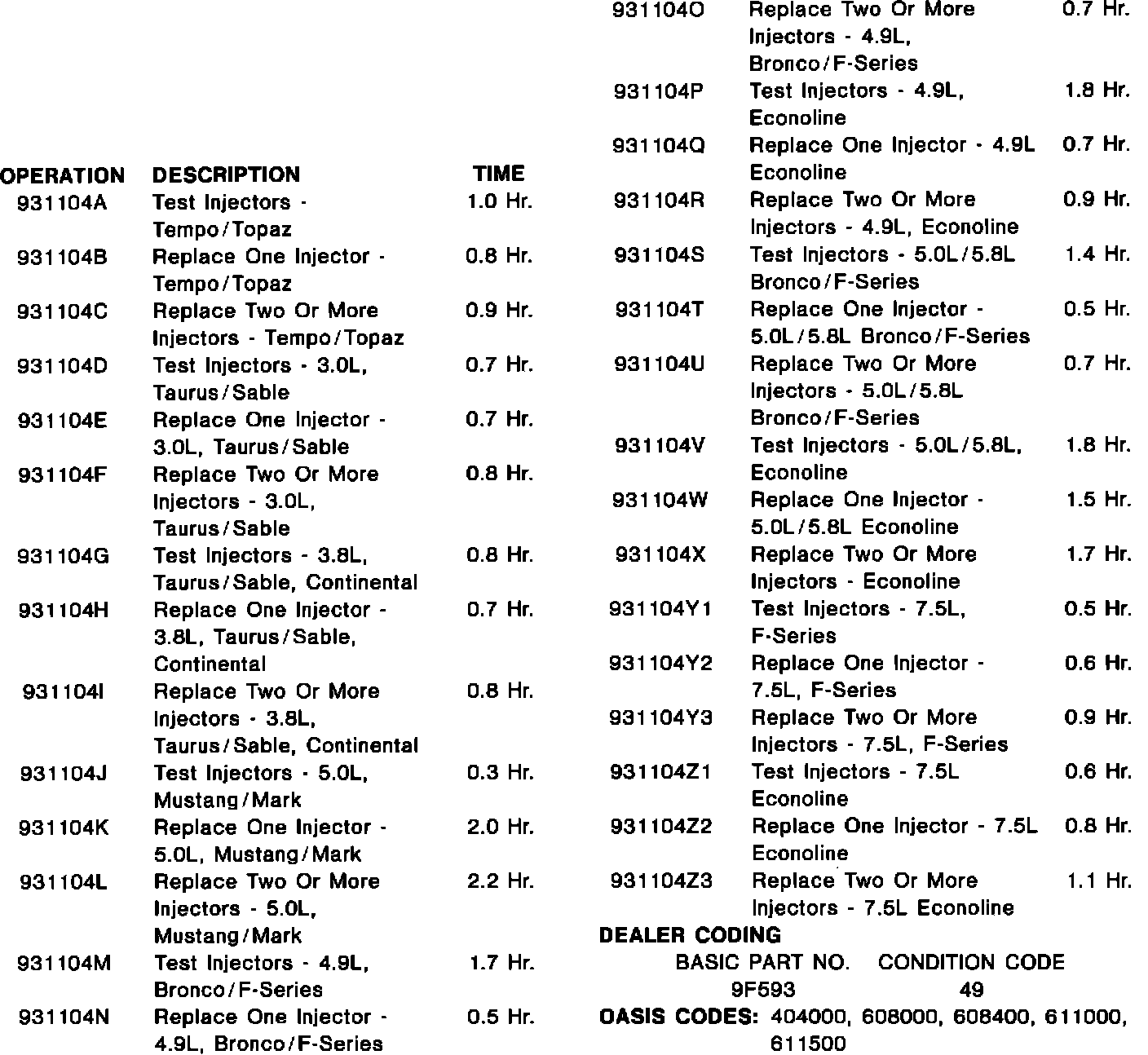 FUEL INJECTOR REPLACEMENT IS ONLY ALLOWED WHEN LEAN FLOW IS VERIFIED BY UTILIZING THE SERVICE BAY DIAGNOSTIC SYSTEM (SBDS) OR ROTUNDA FUEL INJECTOR CLEANER (113-0001).