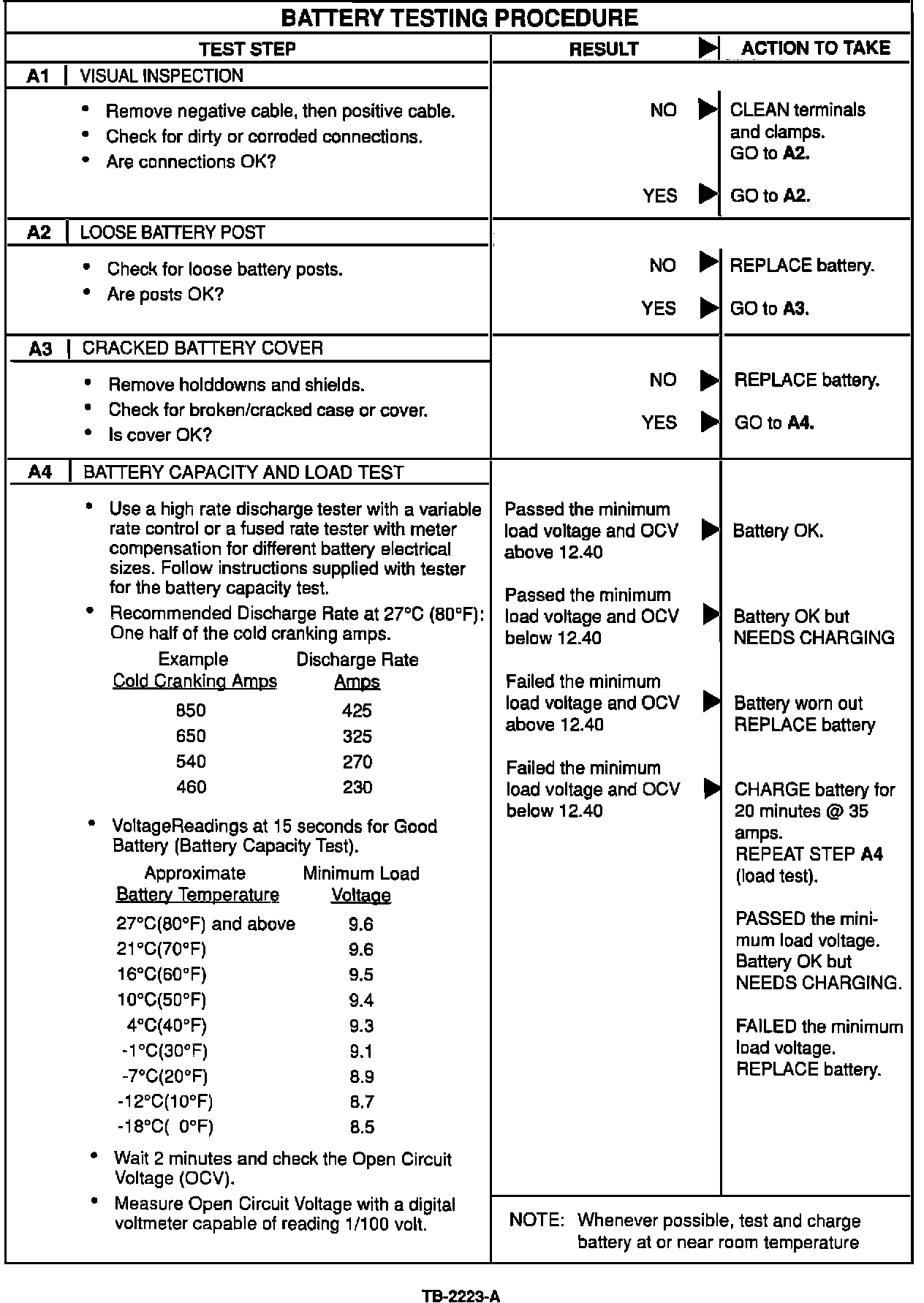 ACTION: If service is required, refer to the Battery Testing Procedure Chart, Figure 1.