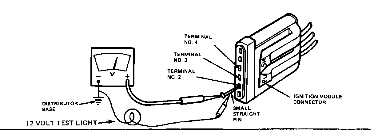 4. Attach VOM to small straight pin inserted into connector terminal No. 2.