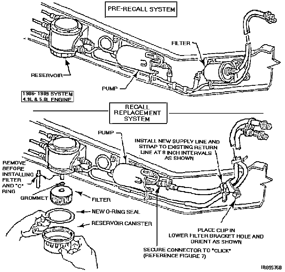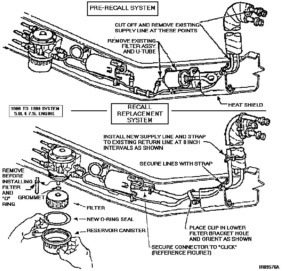 2. Unscrew the lower canister of the reservoir using a flexible strap type oil filter wrench, and slide canister out from frame rail.