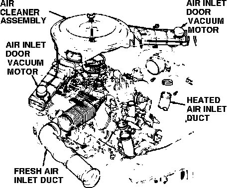 HEATED AIR INLET SYSTEM - System which operates during cold weather and cold start. Its purpose is to bring warm, filtered air into the engine to control the volume of air entering the engine, vaporize the fuel better and reduce HC and CO emissions.