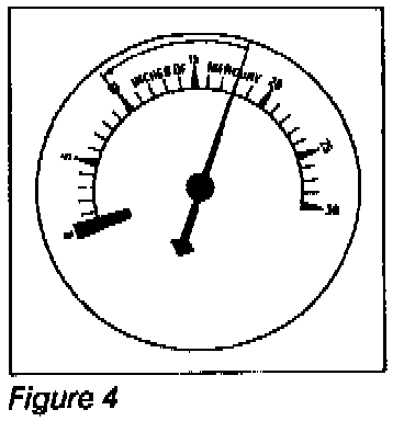 With the engine Idling, the vacuum gauge pointer will drop sharply, every time the leak occurs. The drop will be from the steady reading shown by the pointer to a reading of 10" to 12" Hg or less. If the leak Is between two cylinders, the drop will be much greater. You can determine the location of the leak by compression tests. See figure 4.