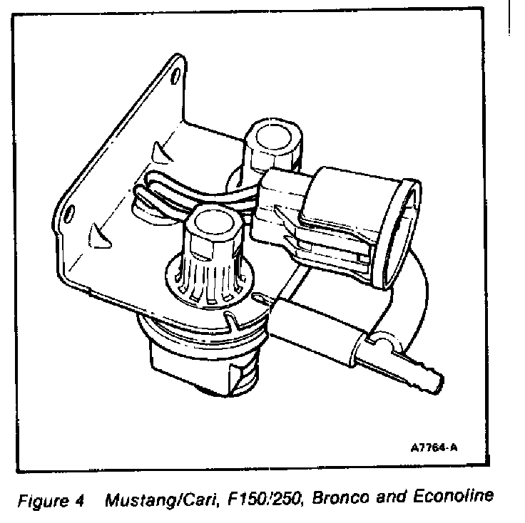 This dual vacuum switch assembly (S1 normally CLOSED, and S2 normally CLOSED) is used in the 5.0L 4-V HO with manual transmission and the 5.8L 4-V to provide an air bleed to the carburetor for the high altitude calibration. S1 will open above 5.0 ±0.5 inches of vacuum, while S2 will open above 10.0 ±0.5 inches of vacuum.