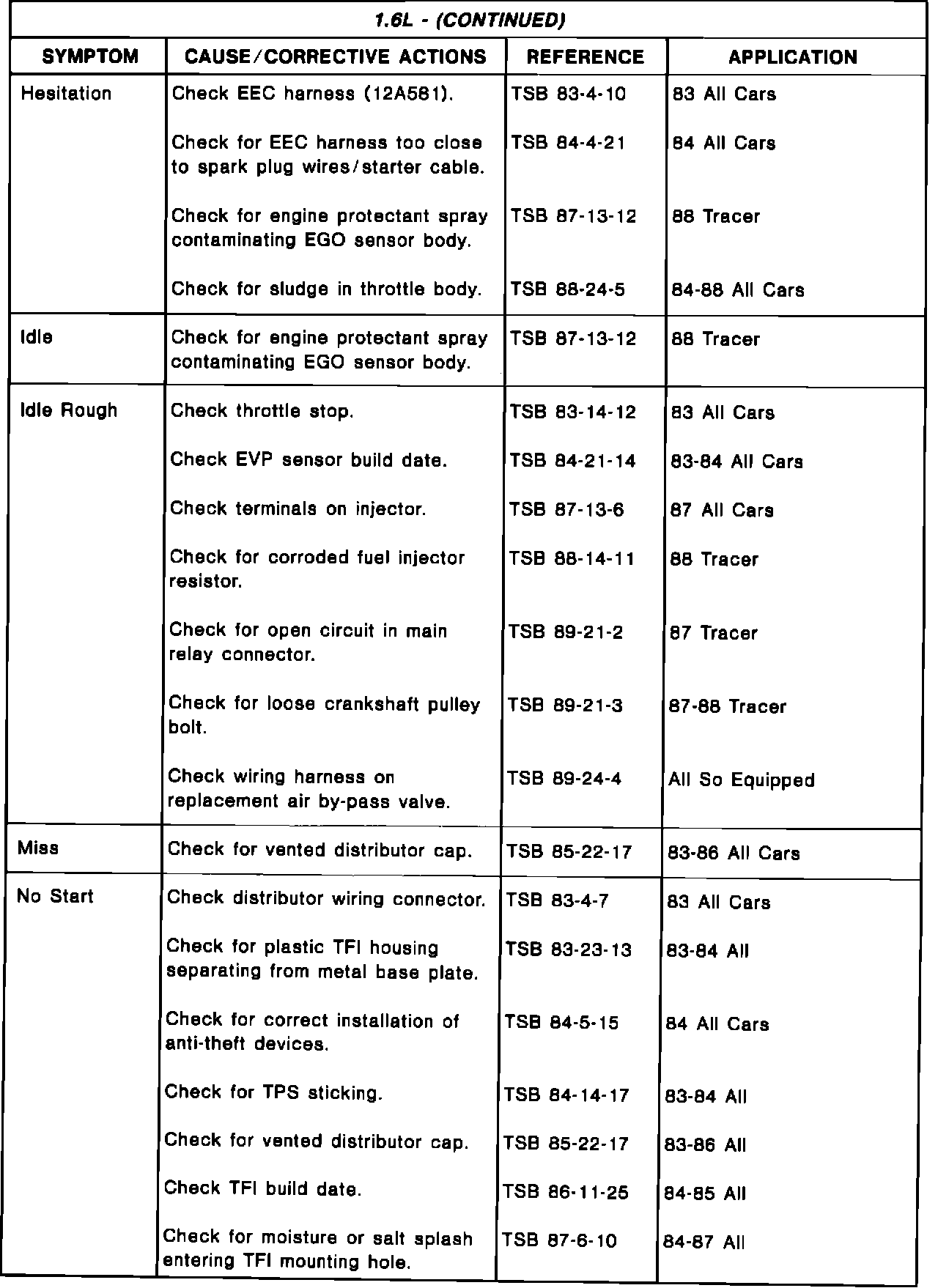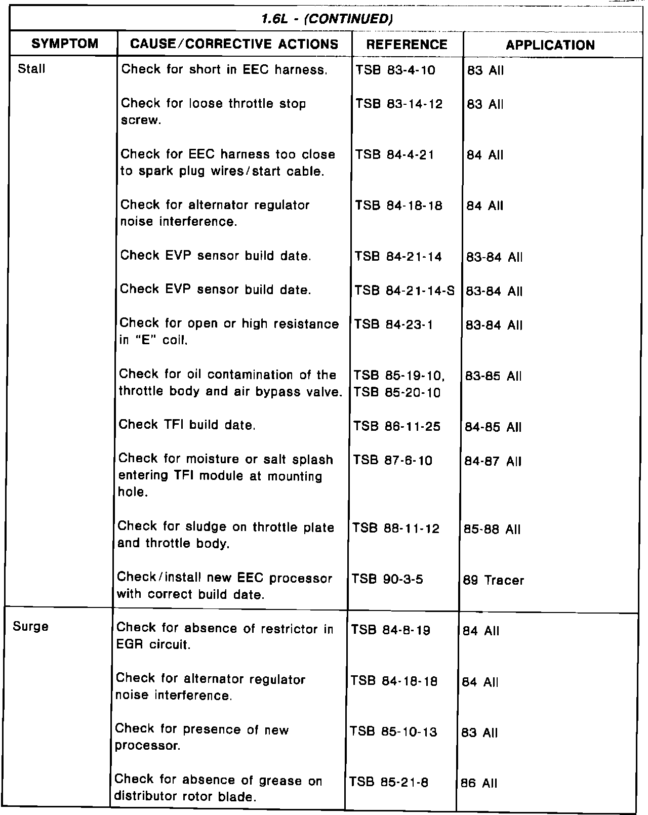 Driveability TSB's - Summary
