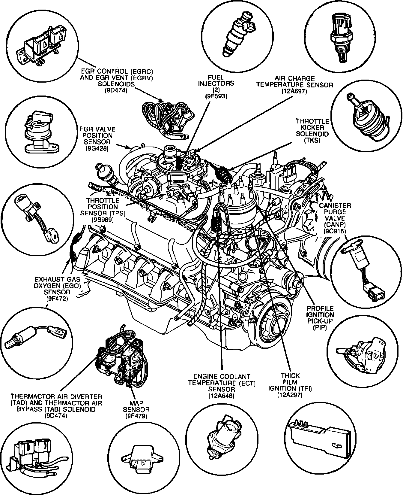 Fig. 10 EEC-IV system components. V8-302 EFI: