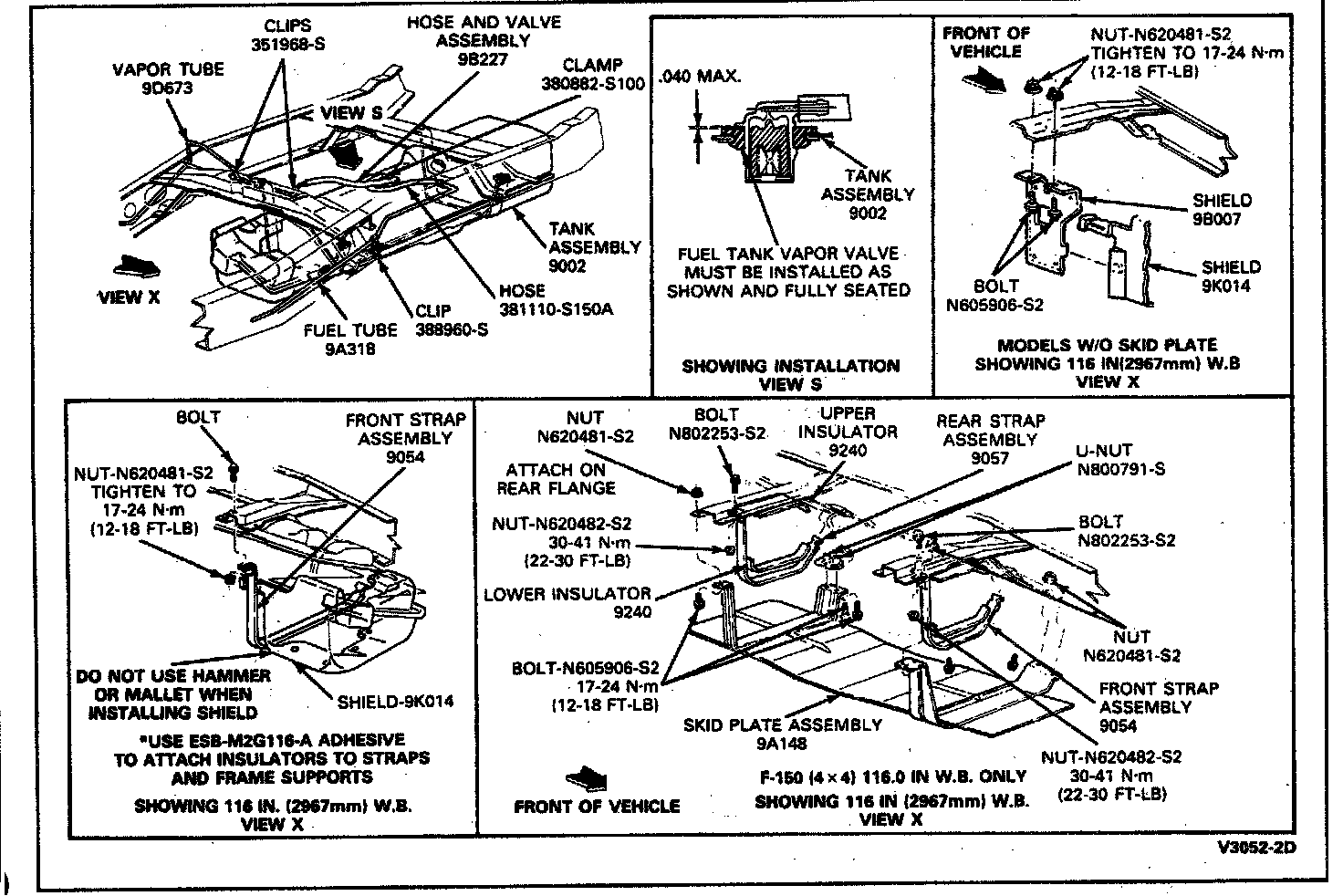 F150 (4x2) - 116 And 138.6 Inch Wheelbase, F150 (4x4) 116 Inch Wheelbase, And F250 (4x2) 138.8 Inch Wheelbase Midship 16.5 Gallon Fuel Tank Installation: