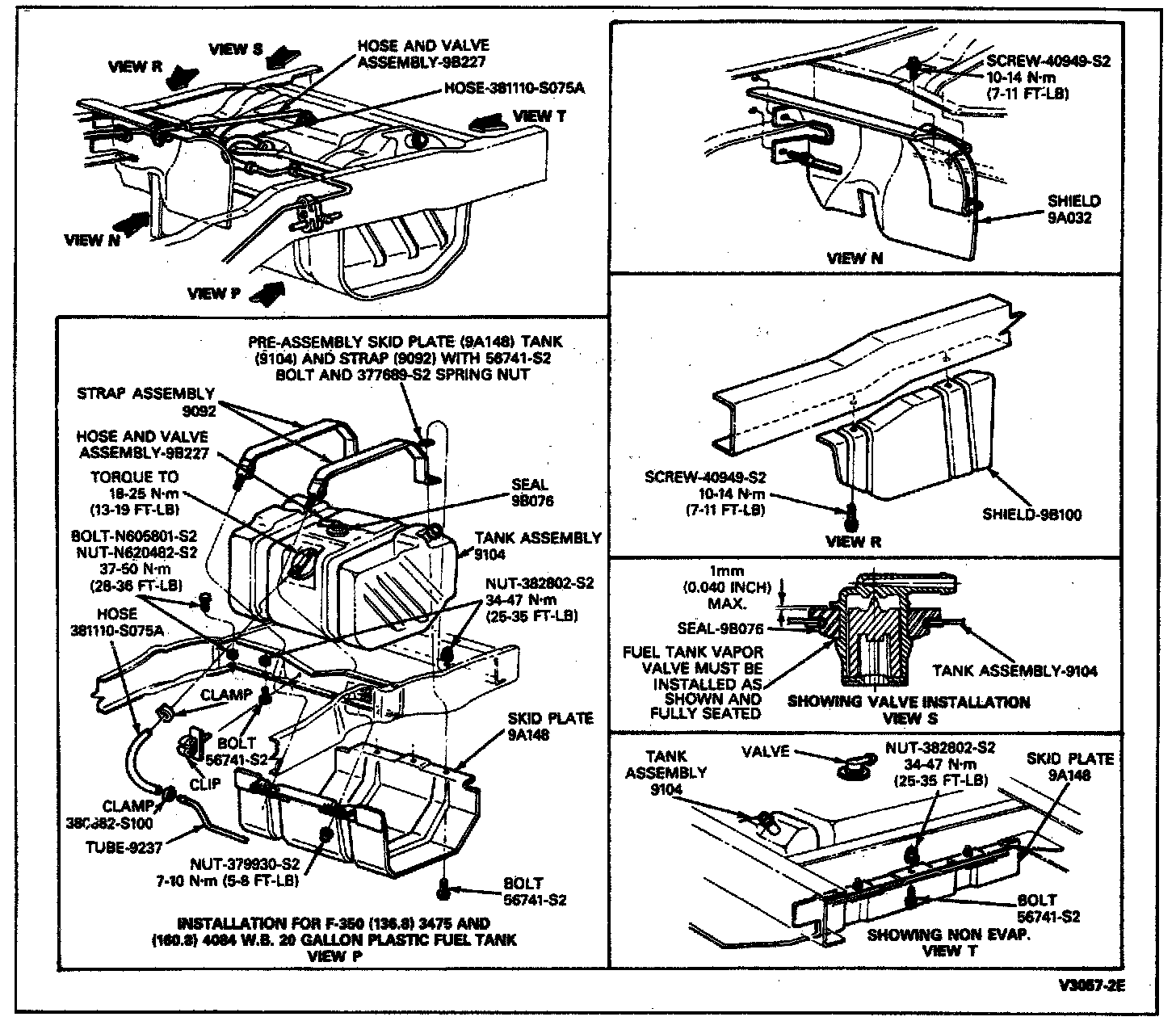 1. If the tank or vapor emission control valve is being replaced, follow the installation instructions in Figs. 21 through 29. Install new support strap insulation as required.