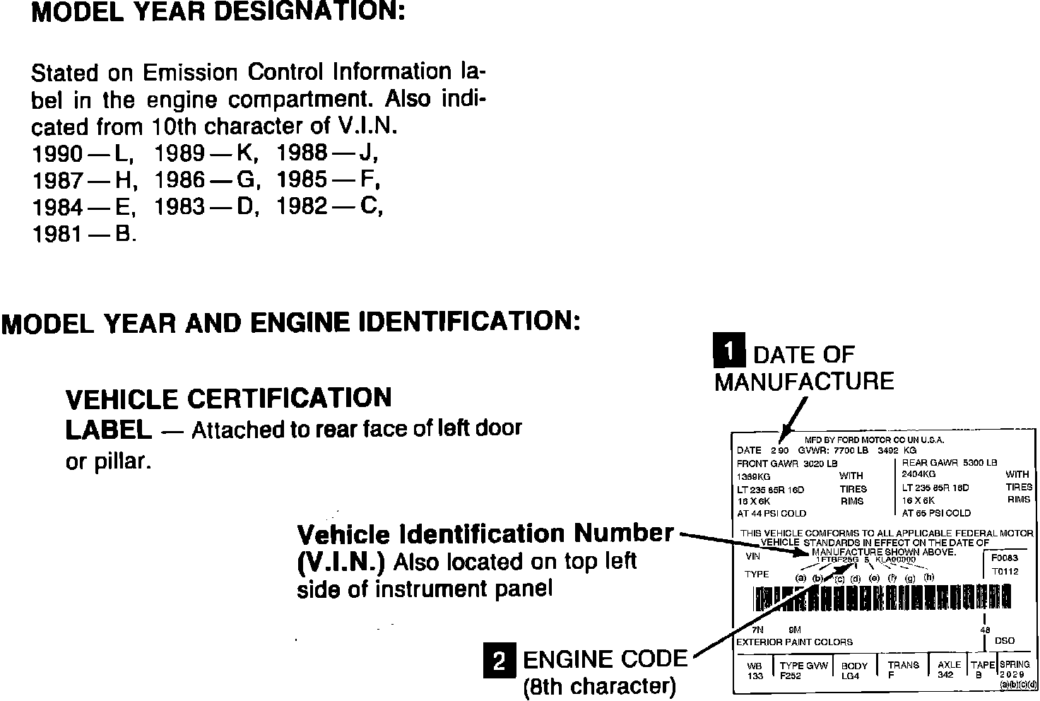 MODEL YEAR AND ENGINE IDENTIFICATION: